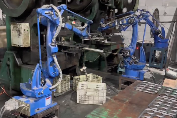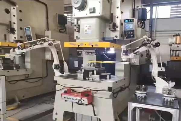 沖壓機(jī)器人是專門針對(duì)各種沖床與油壓機(jī)配置,高效替代人工沖壓作業(yè)并實(shí)現(xiàn)自動(dòng)上下料的一種多用途工業(yè)機(jī)器人。沖壓機(jī)器人具有靈活垂直升降、水平旋轉(zhuǎn)、水平軸伸縮、工件旋轉(zhuǎn)、工件翻轉(zhuǎn)等多自由度動(dòng)作,并可根據(jù)沖床高度、送料高度、下料高度自動(dòng)適應(yīng),最大程度滿足各種沖壓產(chǎn)品工藝要求,從而實(shí)現(xiàn)無人化自動(dòng)化智能工廠。沖壓機(jī)器人可以廣泛應(yīng)用于多種批量生產(chǎn)廠家,如金屬鈑金加工沖剪、成形、引伸。還有如交通車輛、鐘表、家電、文具、手工具、五金、電腦等產(chǎn)品沖壓加工,還可加裝自動(dòng)送料機(jī),從事自動(dòng)移送整條生產(chǎn)線加工。同時(shí)沖壓機(jī)器人可根椐企業(yè)自身實(shí)際需求選擇數(shù)控沖床、氣動(dòng)型精密沖床、三圓導(dǎo)柱高速精密沖床或肘節(jié)式連桿式高精密高速?zèng)_床等配套,各系列沖床設(shè)備在五金自動(dòng)化加工中應(yīng)用廣泛,已被眾多加工企業(yè)所認(rèn)可。