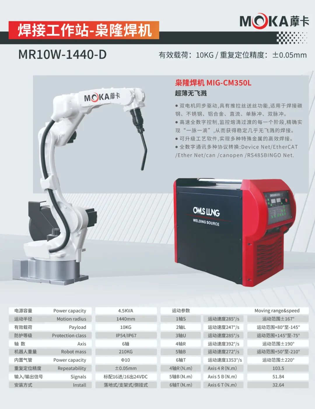 MR12-2010機器人重復定位精度可達±0.05mm,有效載荷為12kg,運動半徑達2010mm,是一款應用于氣保、氬弧、激光、鋁、不銹鋼、碳鋼等領域的焊接專用機器人。