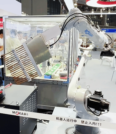 藦卡機器人與奧太、江龍智能、創想智控、柏楚等公司合作,將國產品牌的實力展現給大家?,F場藦卡共呈現10臺工作站,展位參觀觀眾絡繹不絕,國內外觀眾紛紛駐足,眾多行業專家和觀眾對針對藦卡機器人展機及解決方案表現出濃厚的興趣和高度認可。